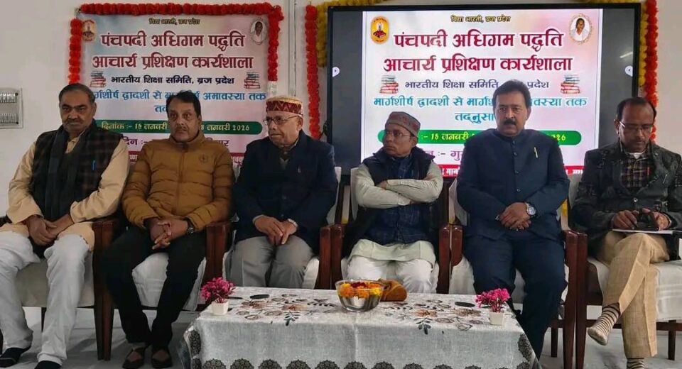 मथुरा। कृष्ण चन्द्र गांधी सरस्वती विद्या मन्दिर इंटर कॉलेज, माधव कुंज में 15 जनवरी से 18 जनवरी 2026 तक आयोजित चार दिवसीय पंचपदी अधिगम पद्धति आचार्य प्रशिक्षण कार्यशाला का समापन समारोह संपन्न हुआ। समापन सत्र का शुभारंभ विद्या भारती ब्रज प्रदेश के प्रान्त संगठन मंत्री श्री हरीशंकर, प्रदेश निरीक्षक श्री यशवीर सिंह, जन शिक्षा समिति […]
