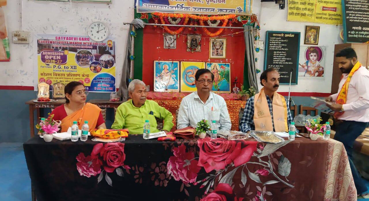 वृन्दावन, 15 मार्च 2026 (रविवार)। शिक्षा कायाकल्प न्यास के तत्वावधान में तथा समर्थ भारत के सहयोग से सत्या देवी गर्ग सरस्वती विद्या मंदिर इंटर कॉलेज, कैलाश नगर वृन्दावन (मथुरा) में कौशल विकास प्रशिक्षण केन्द्र की स्थापना एवं संचालन की प्रारंभिक योजना बनाई गई है। इस उद्देश्य से केन्द्र के शीघ्र संचालन तथा योजना के क्रियान्वयन पर विचार-विमर्श और आगे की रूपरेखा तय करने के लिए एक महत्वपूर्ण बैठक का आयोजन किया गया।